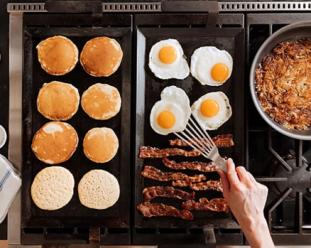 It’s pre-seasoned with coconut and shea nut oils, so it arrives ready to cook. And unlike nonstick pans that degrade over time, this griddle develops a natural patina that improves with use. The more he cooks with it, the better it performs.